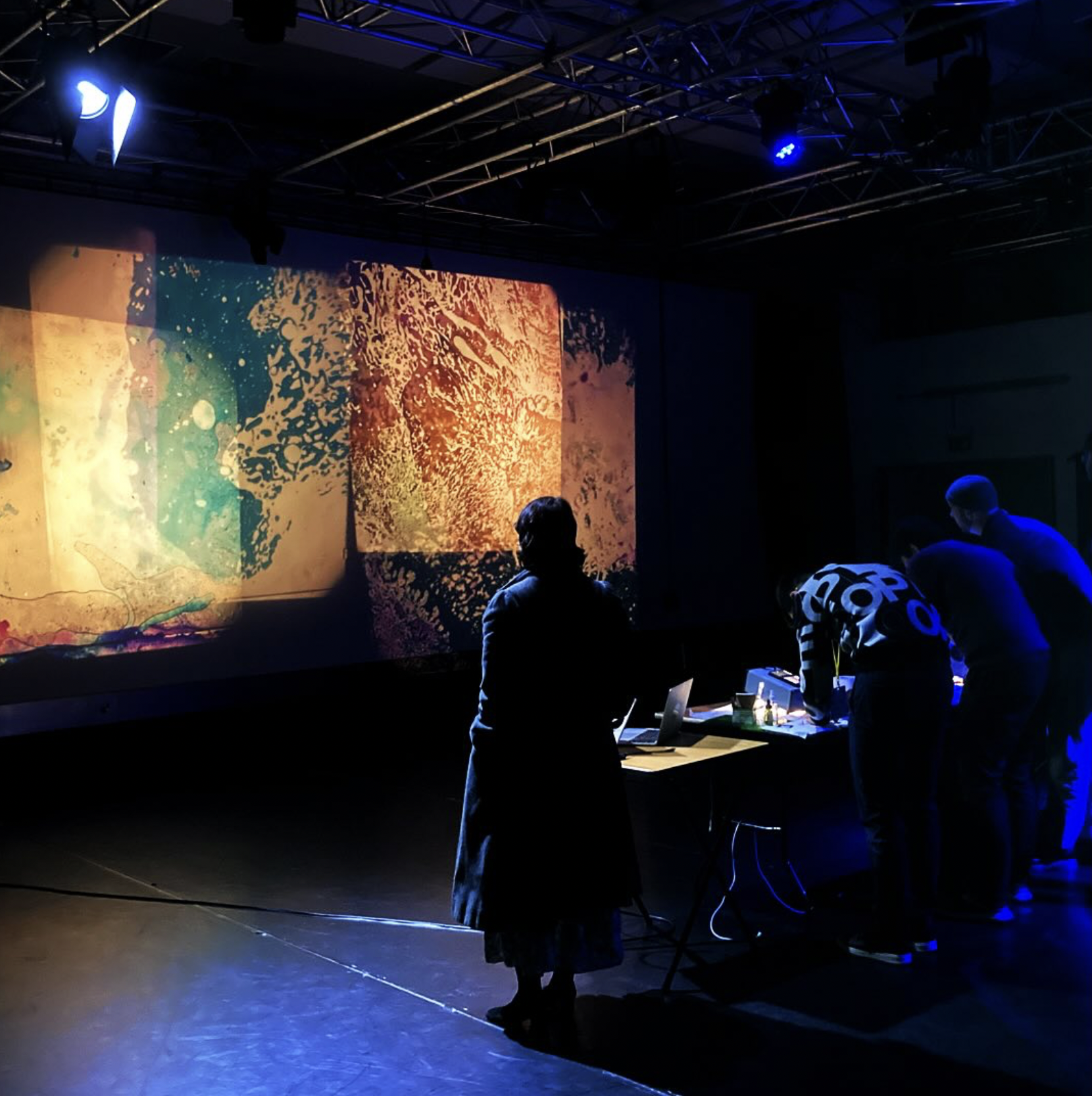 Partly inspired by Brian Eno’s lecture on perfume, the lecture explores the role of synaesthesia across a range of artistic and countercultural practices. Interspersed with readings from personal “sense logs,” the performance was animated by liquid colour projections by Bardo Light Show, concrete mandala imagery by tie-dye artist Courtenay Pollock (The Grateful Dead), and an immersive soundscape by sound artist and gong practitioner SonicSoul.